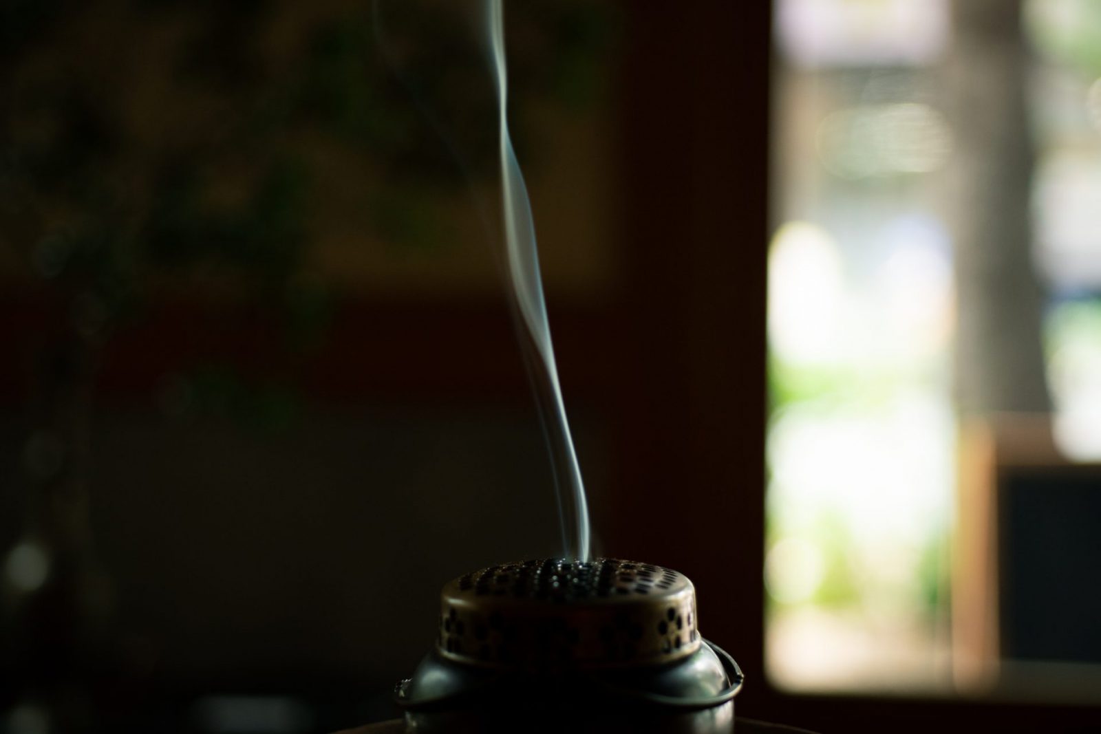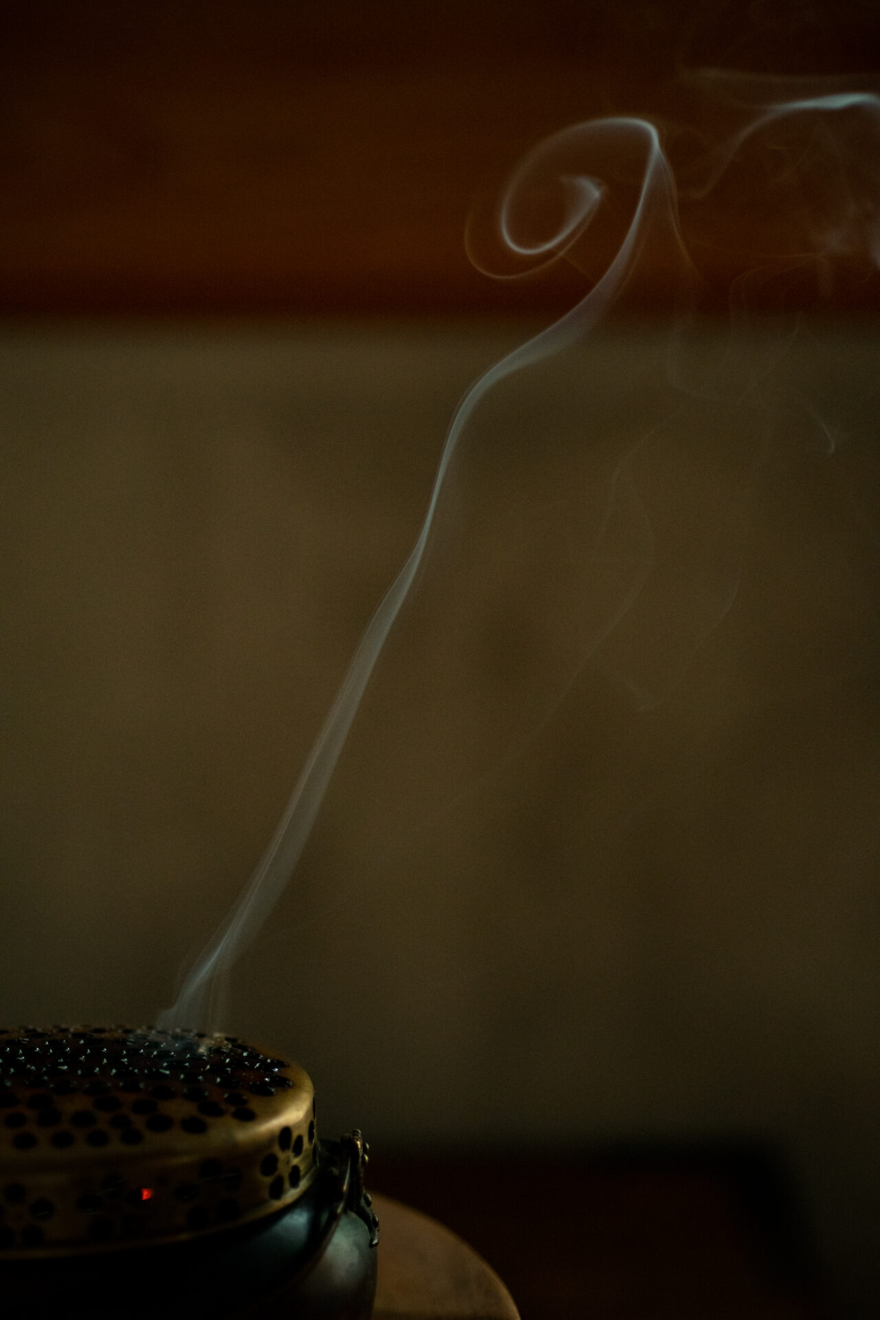 エッセンシャルオイルは、オイル自体に鼻に近づけるほど香りを感じる一方で、線香は煙が空気と混ざり合うことで「空間」を香りで満たす。