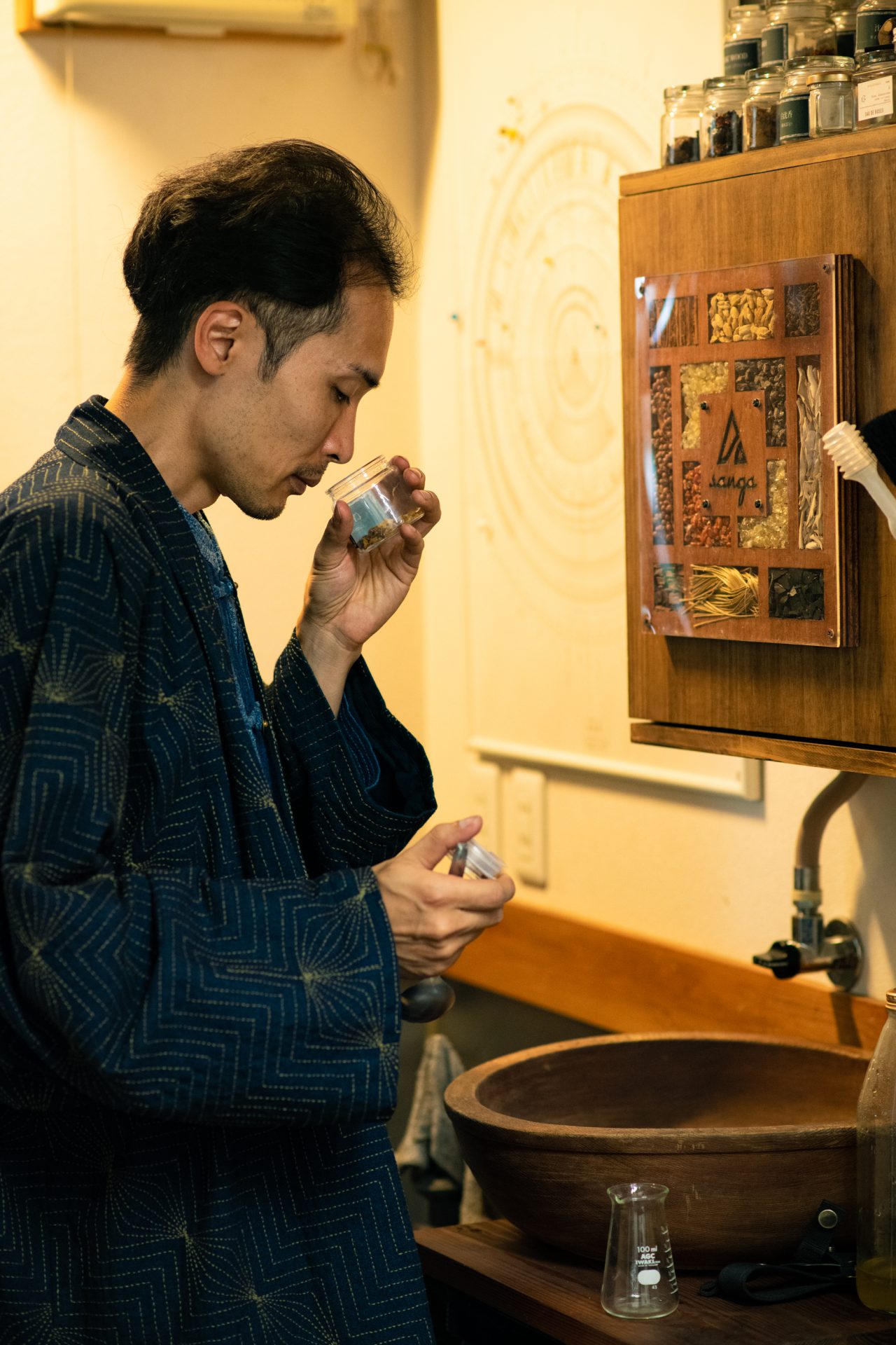 世界中で自ら採取してきたハーブ、香木、スパイス、鉱石などを原料に、創作香料を独自に開発。自然物だけで調香したオリジナルの線香は国内外で注目を集める。