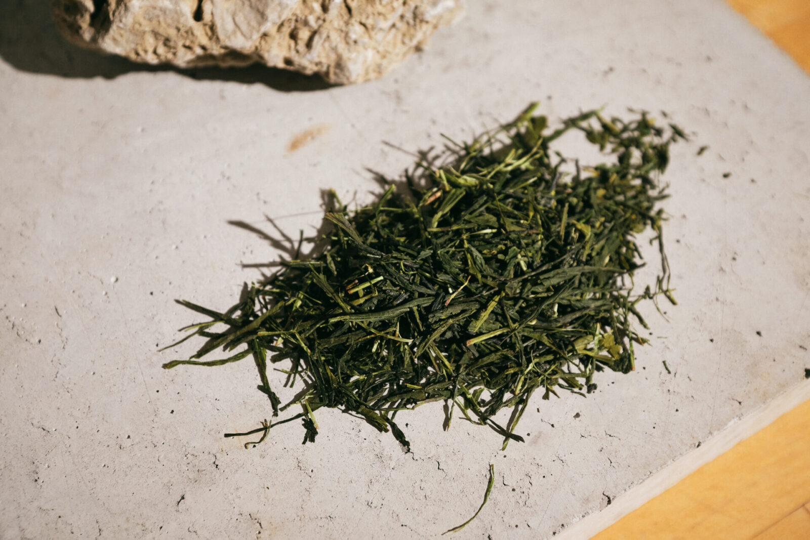 この日のお茶は、春日薬草店の「千年美人」。貴重な在来品種の中でも、生産数の少ない秋摘み茶だという。