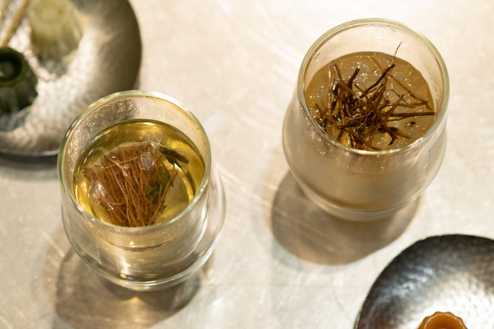 京都の「(THISIS)SHIZEN(ディスイズシゼン)」で味わえる国産ベチバーのハーブティーは、根っこ特有のウッディで大地を感じさせる香りがふわりと漂いつつ、シトラス系の清涼感やフローラルな甘い芳香が複雑に混ざり合い、何とも心地よい飲み物に仕上がっていた。