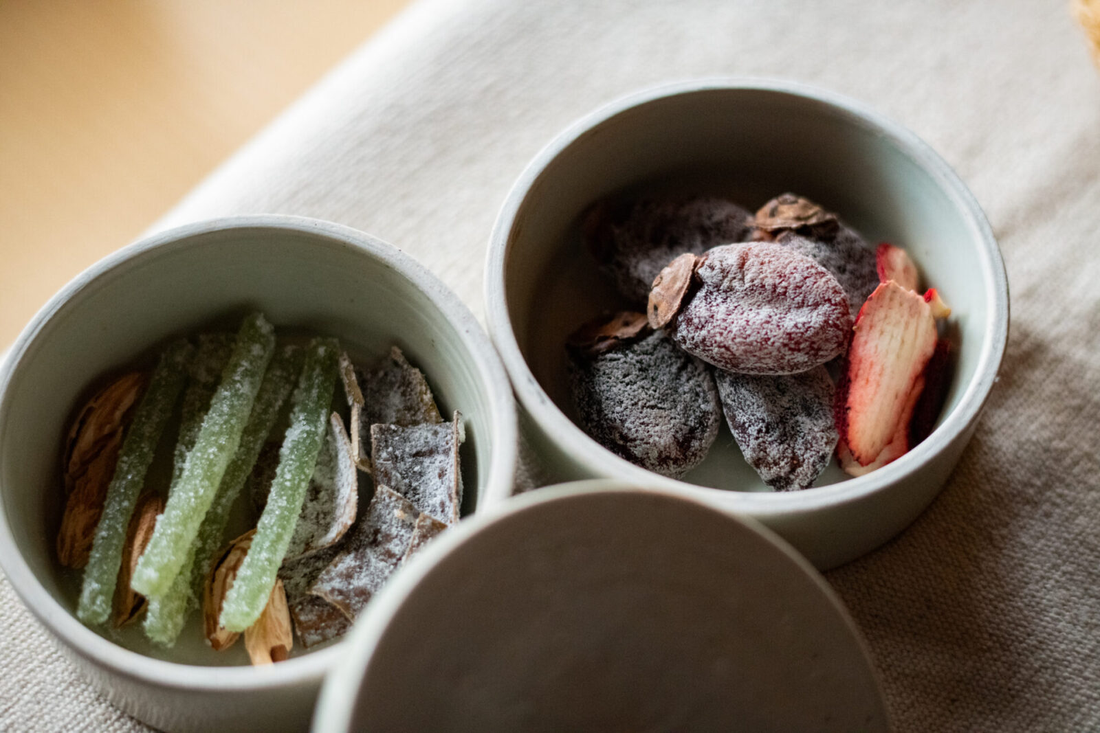 次に梅の花、仏手柑(ぶっしゅかん)、松の実、中国緑茶をブレンドした三清茶。