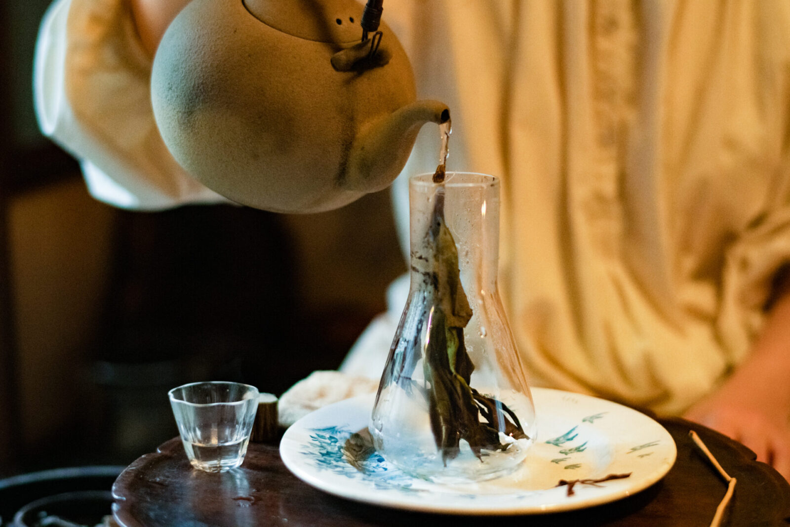 最後に淹れてくれたのは、滋賀の三井寺で新月の日に摘んだ白茶束だ。