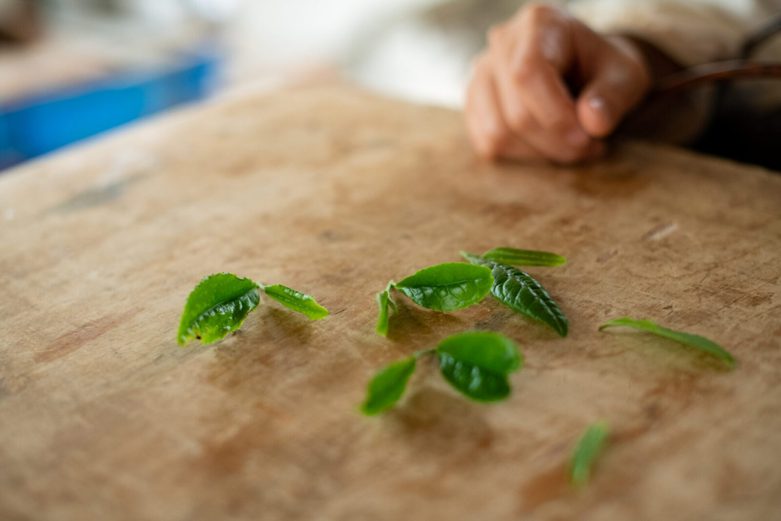 インタビューを終えると、堀口さんはワークショップで実際に摘んだ茶葉を手もみで製茶して見せてくれた。