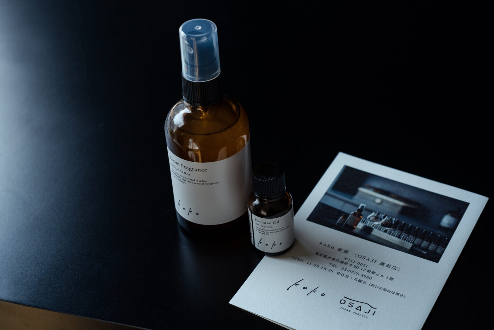 訪れたのは、センシティブスキンケアライフスタイルブランド「OSAJI」が、2021年夏にオープンさせた「kako-家香-」。ホームフレグランス調香専門店だ。