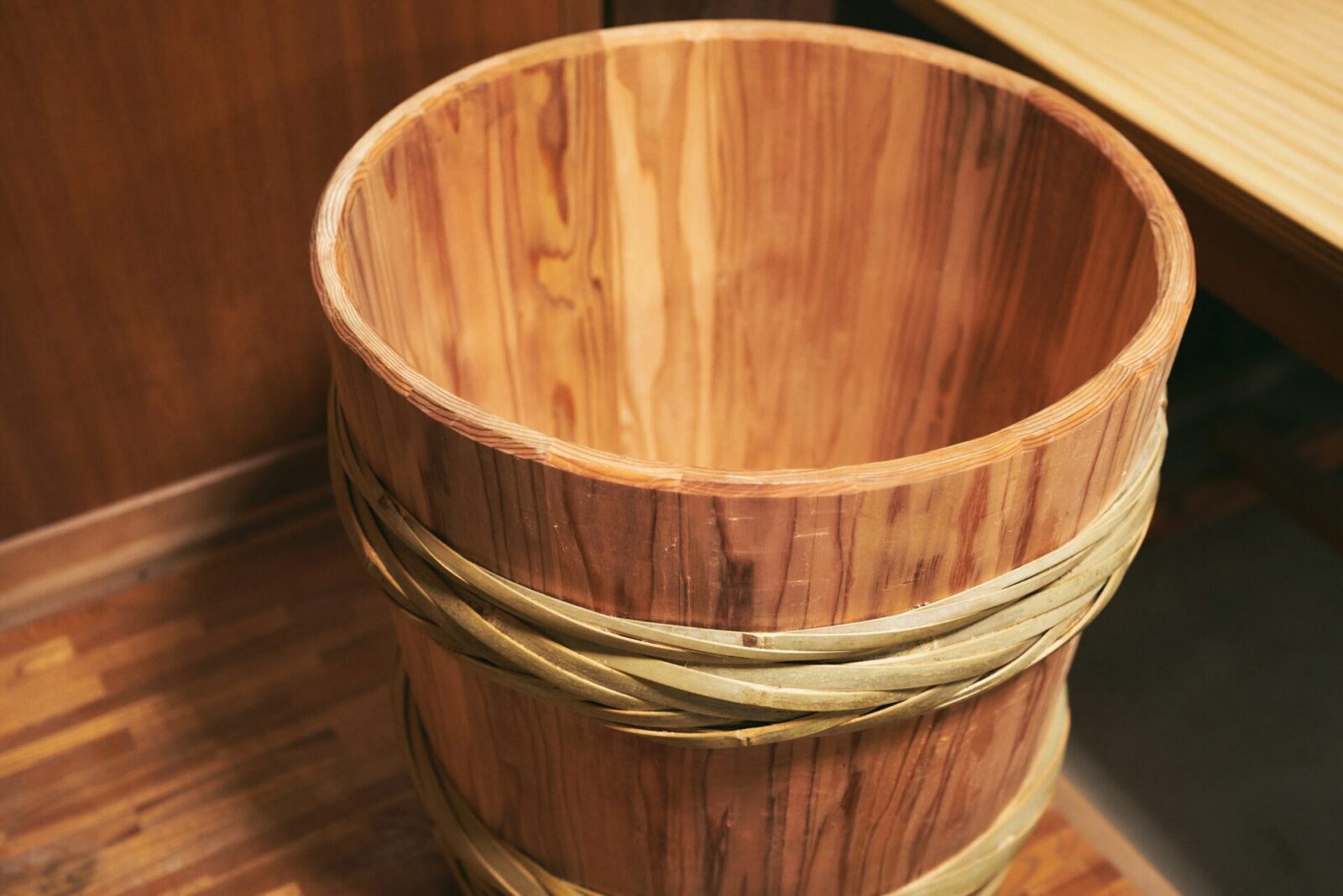 いよいよ、乳酸発酵の過程になると、擦った茶葉を大きな木の樽や桶に入れる。「杵でつきながら、空気をしっかりと抜くことが重要」とのこと。