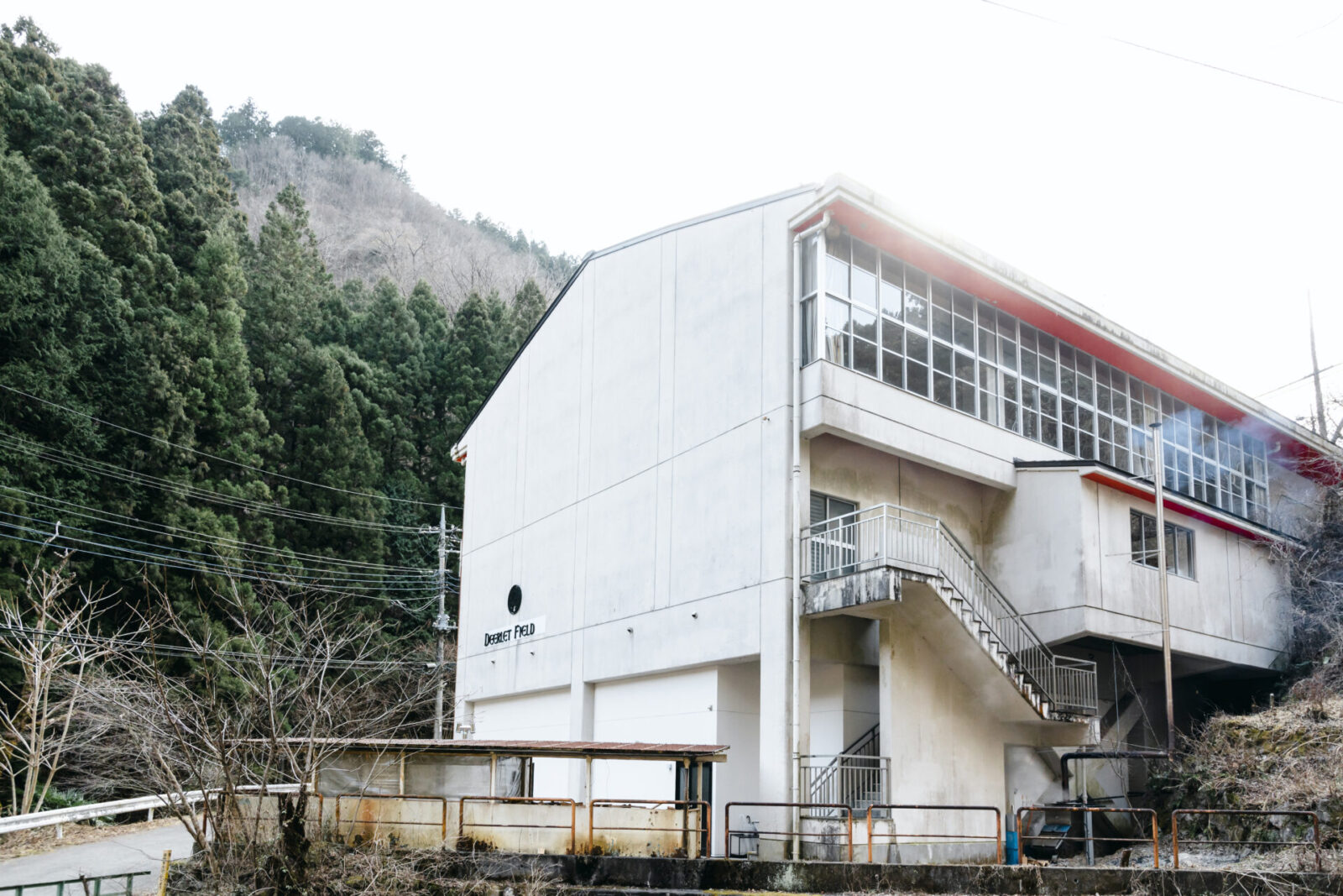 現在、醸造所が置かれているのは、2001年に廃校となった小鹿野町立倉尾中学校の体育館だ。厳密には体育館の1階部分にあった駐車スペースを改築したもので、2階フロアはいまも体育館のまま。校舎はすでに取り壊されているが、敷地内に残る校歌の石碑がかつての賑わいを感じさせる。