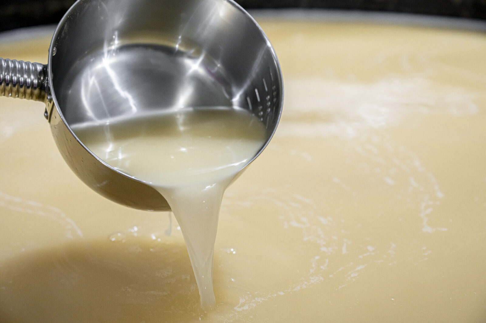 醸造所で発酵直後のミードをタンクから柄杓ですくい、試飲させてもらった。火入れ前の生原酒だ。