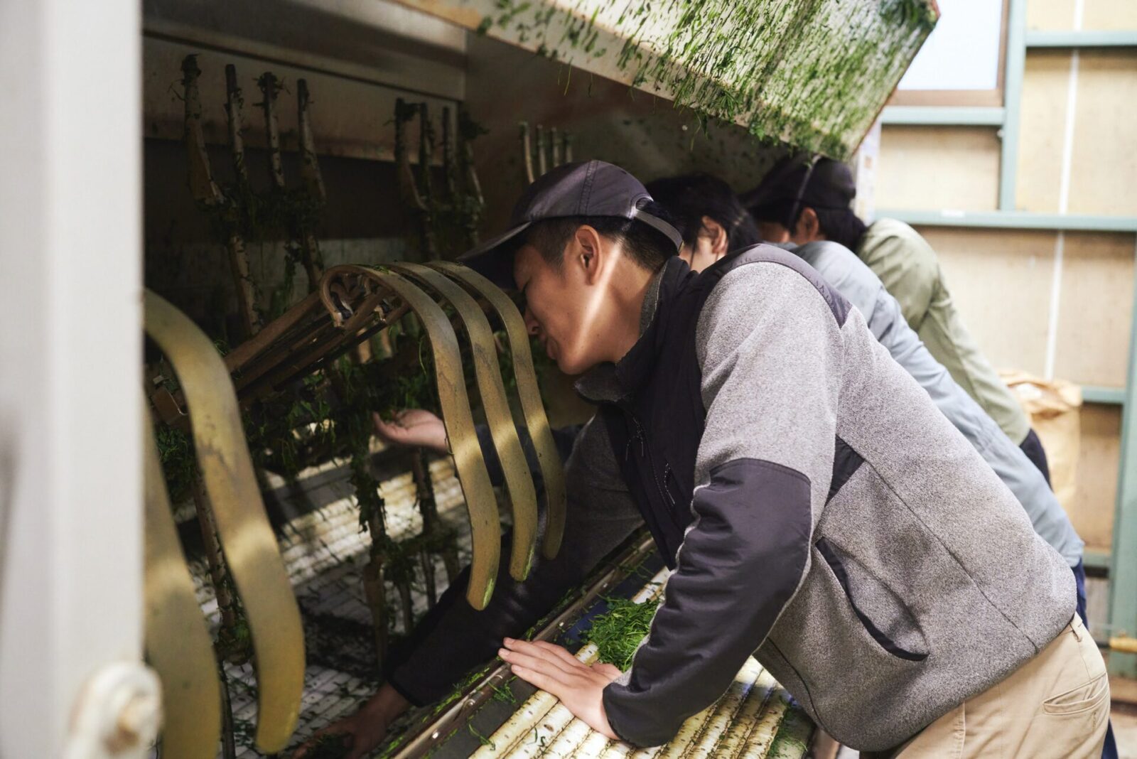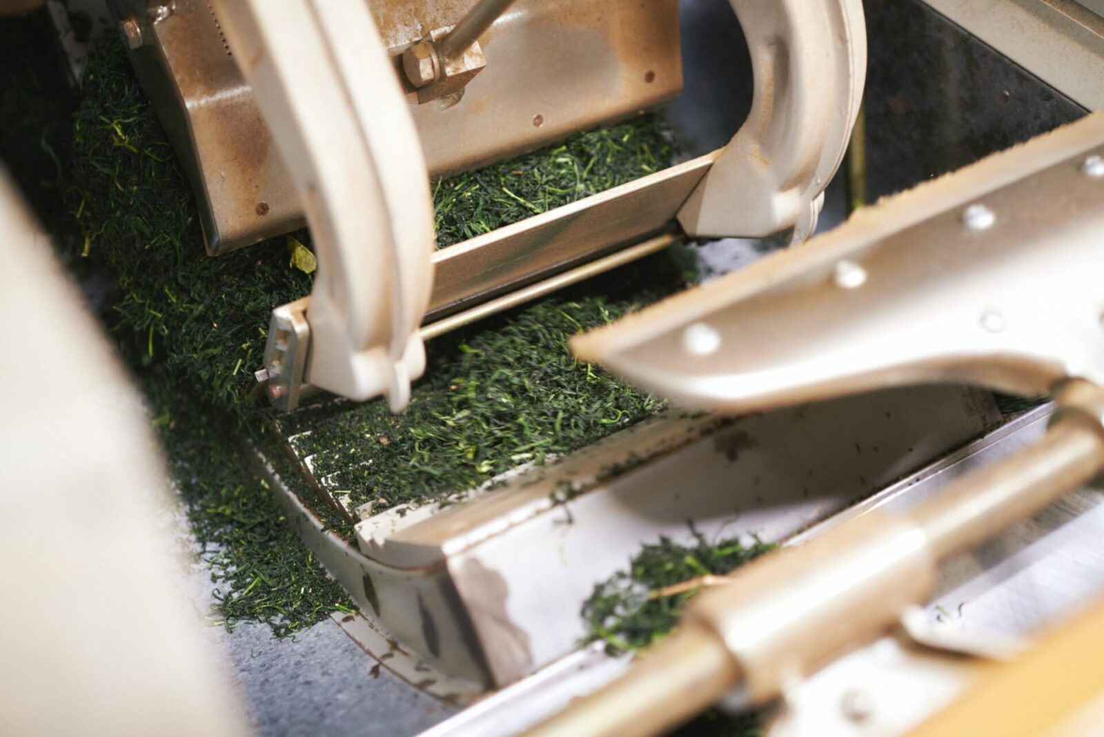 ちょっとした天候の変化で、新芽の成長が大きく変化するお茶。今年は収穫量こそ満足した出来ではなかったものの、ここから茶葉の香味を最大限に引き出すため、昔ながらの手揉み製法を基本とした機械揉みで荒茶に仕上げていく。