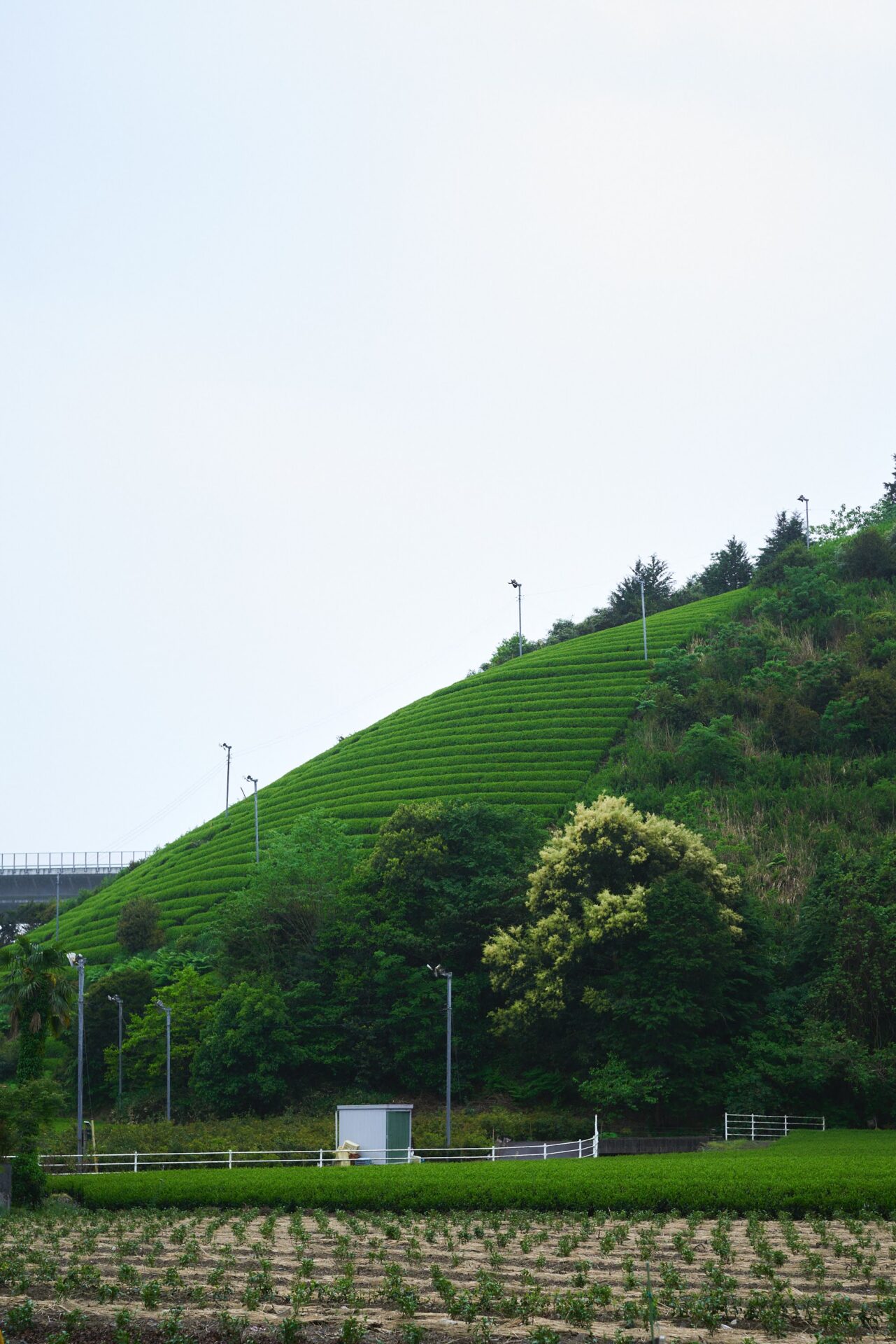市街地から車を20分ほど走らせると、ハッと目を引く鮮やかな緑の山々と斜面に広がる茶畑が現れた。