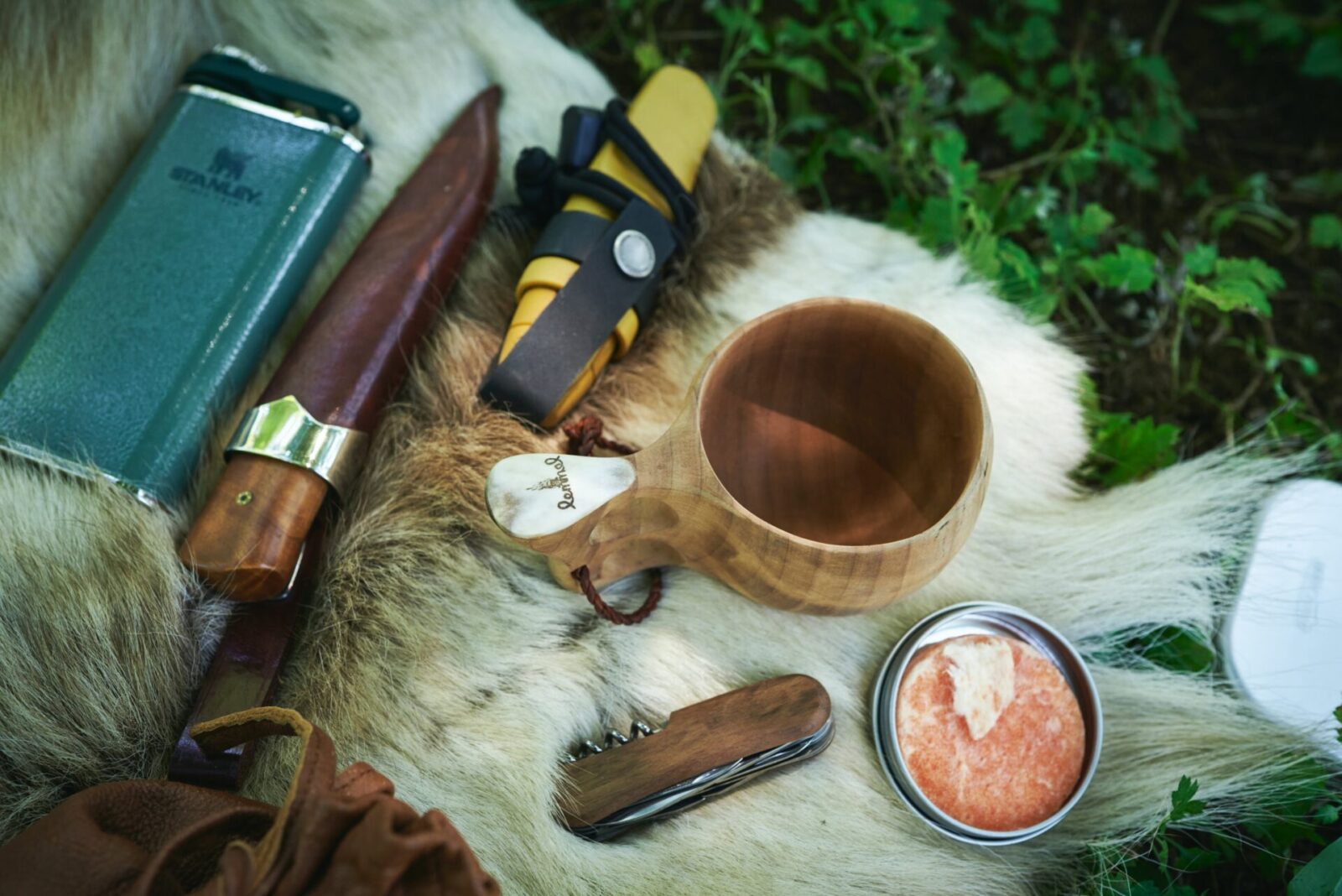 少し荒く挽いたコーヒー豆を入れたヘラジカの皮袋、持ち手の上部にトナカイの角があしらわれた白樺材のククサ(白樺のコブをくり抜いたハンドメイドのマグカップ)を取り出した。