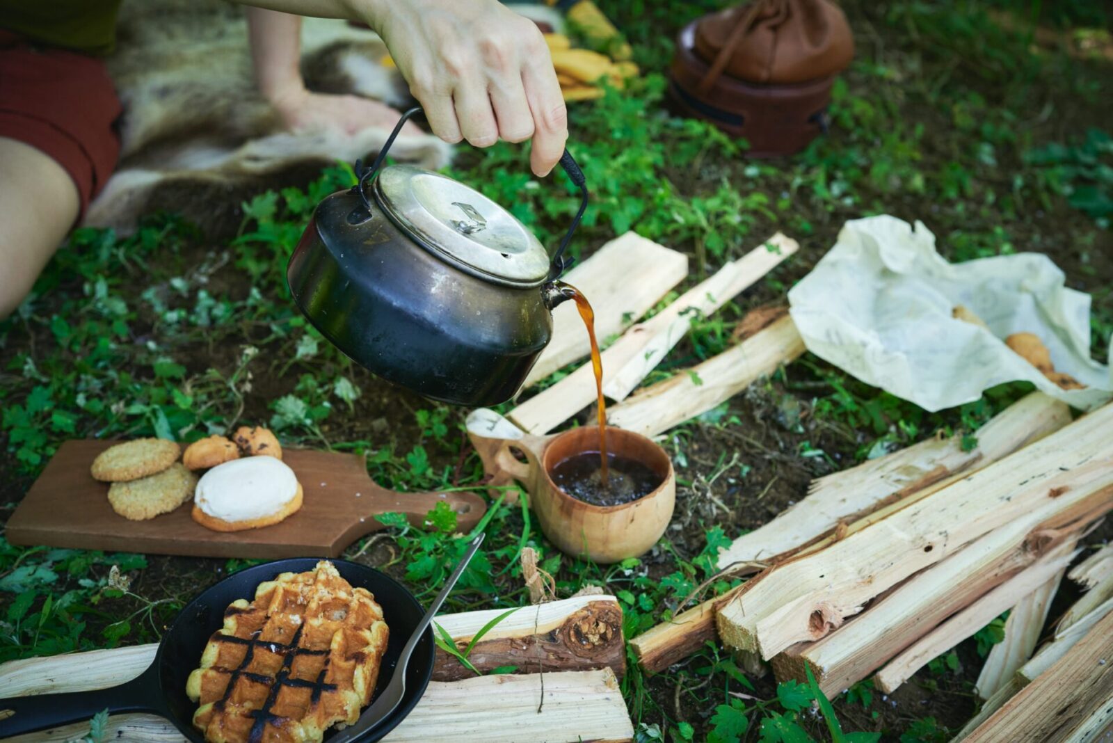 スウェーデンでは、焚き火で淹れたコーヒーに塩を入れることもあると聞き、試してみる。苦味がまろやかになり、さらに味わい深い。