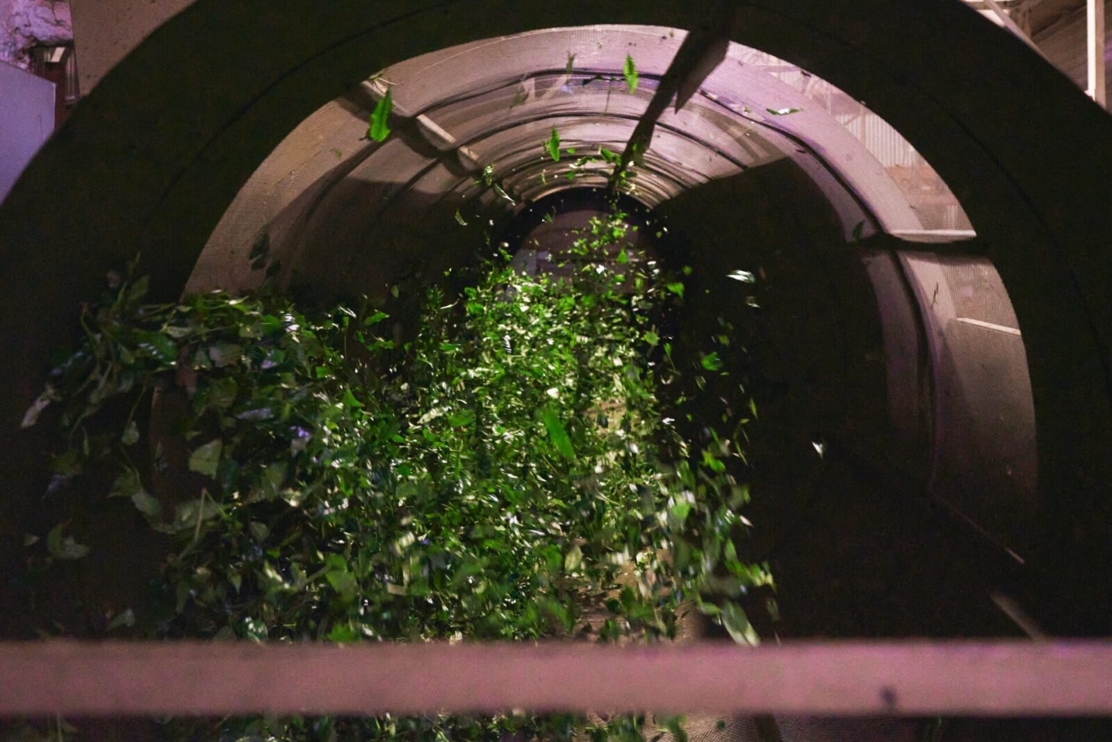 お茶は摘んだ直後から酸化が始まるため、加工はスピードが命。西製茶は機械の台数を多く導入しており、一般的な製茶工場に比べて5倍以上の処理能力があるとのこと。