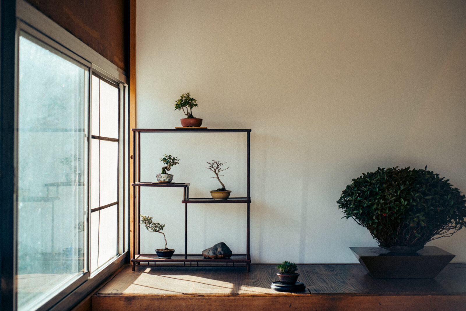 お客さんを迎えるとき玄関や床の間に飾れば、話をはずませるきっかけになる。盆栽は外や室内も豊かな空間に変えてくれる、そしておもてなしのツールでもあるのだ。