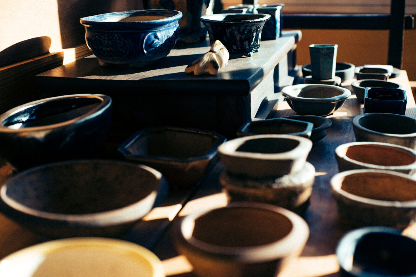 「例えば、樹齢15年の木を盆栽として植えたいときは、鉢も15年前につくられた鉢を合わせるようにします。新しい鉢だと時間軸が合わず、見た目も合いません。これは僕のこだわりではなく、盆栽の職人たちはみんなそうしています」