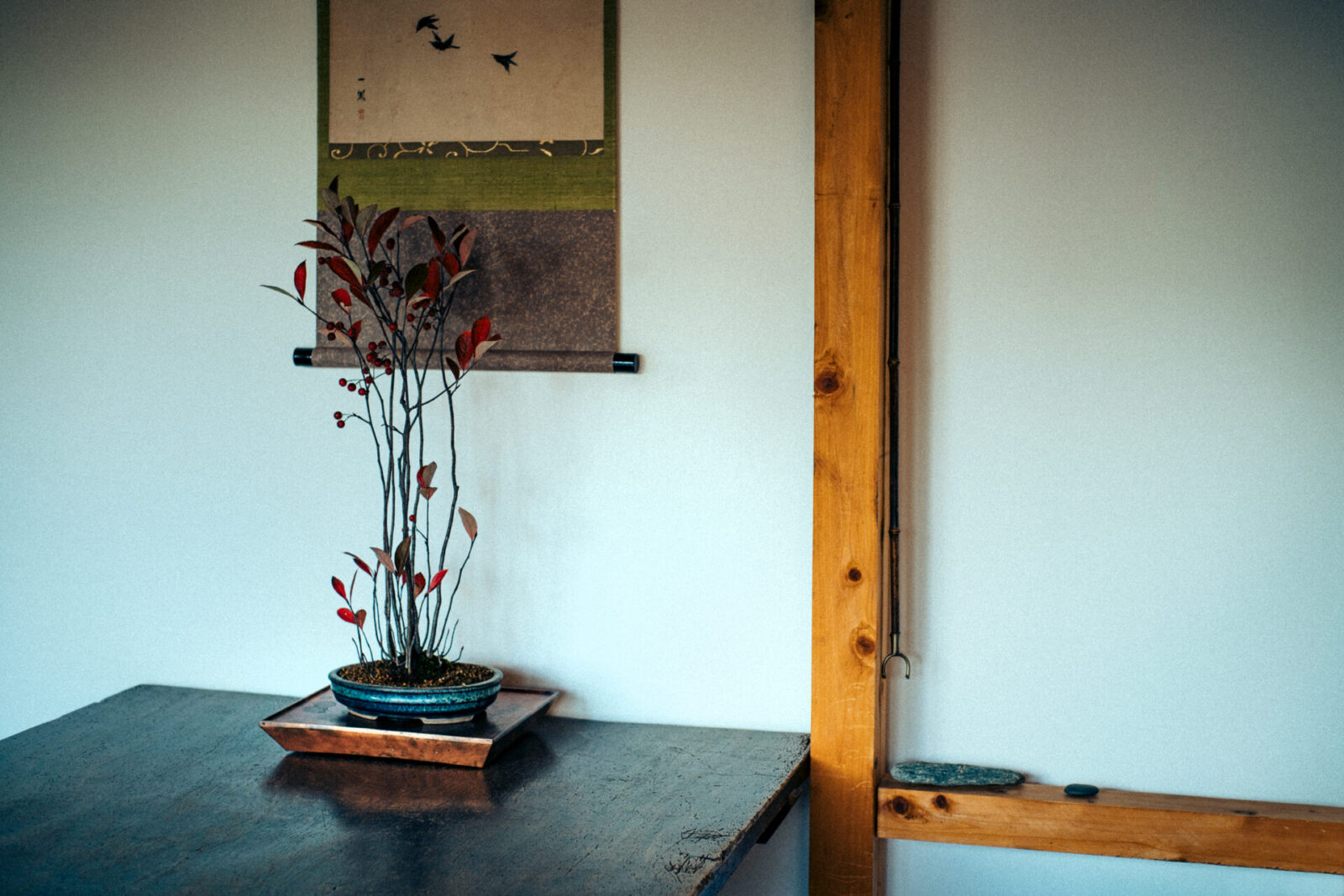 特徴的なのが、冬だ。枯れ木を指す裸木の盆栽を飾り、それを見て愉しむことが美しいとされる。