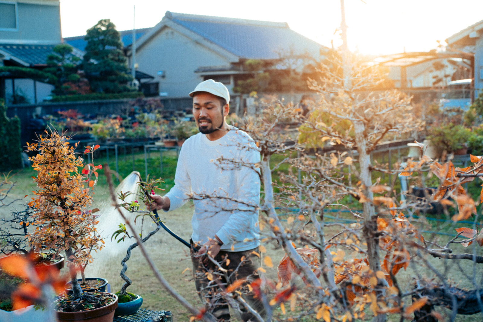 「水をあげているときが、一番心が溶ける瞬間です。真冬以外は1日1回水をあげるんですけど、そのときが一番盆栽と向き合えます。葉っぱに水がついて、木も生き生きとして、水をもらって喜んでいるでしょうし、水を通して盆栽と気持ちがつながる感じがします」