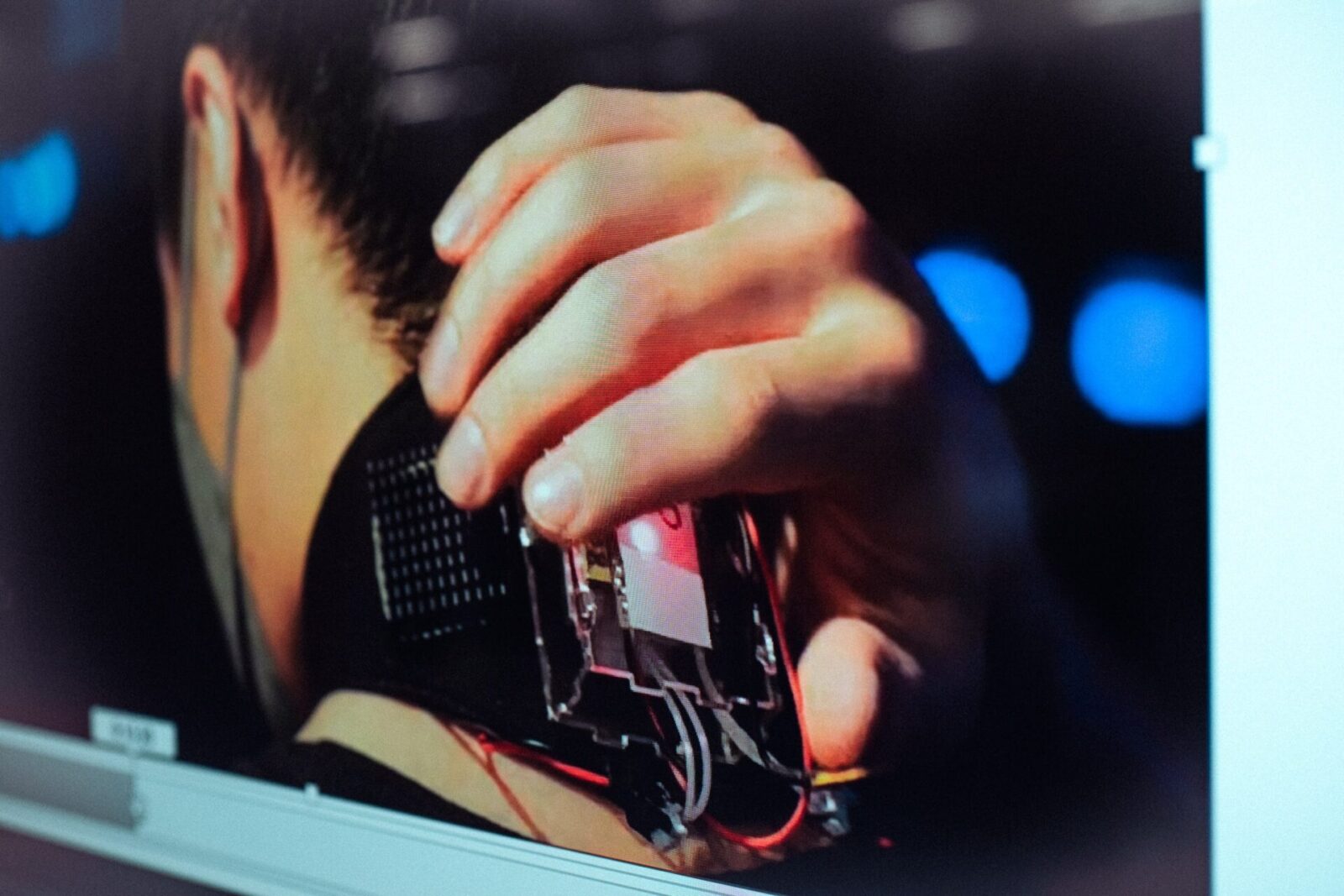 KMDの修士課程の学生が主導した研究「Frisson Waves(フリソンウェーブス)」*5 では、彼女が開発した「フリソン誘発ネックバンド」を使って、ひとを意図的に「ゾクッ」とさせることができます。