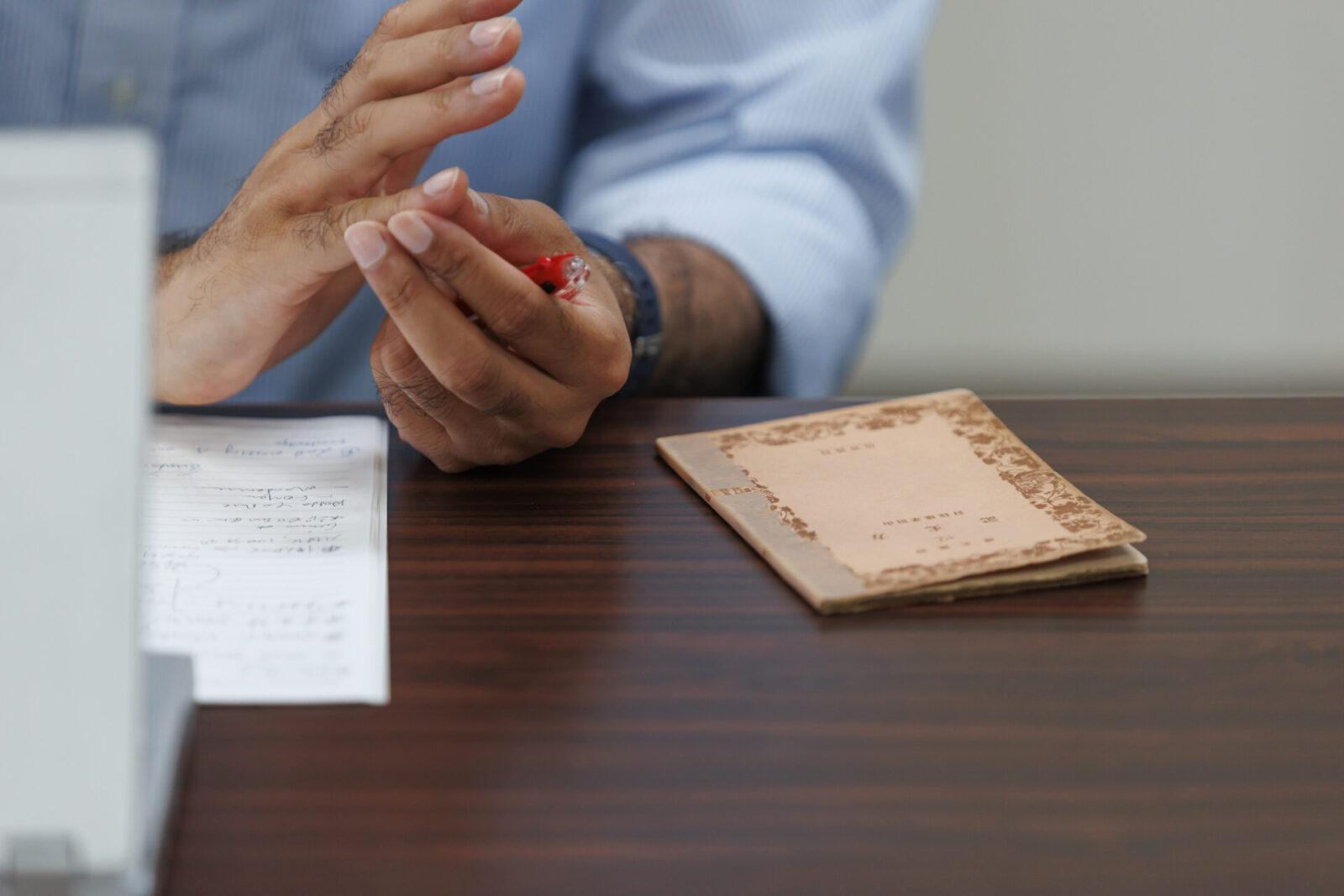 龍谷大学の世界仏教文化研究センターで博士研究員を務めるインド出身のプラダン・ゴウランガ・チャランさんは、鴨長明の『方丈記』との出会いをきっかけに日本研究の道を志した。