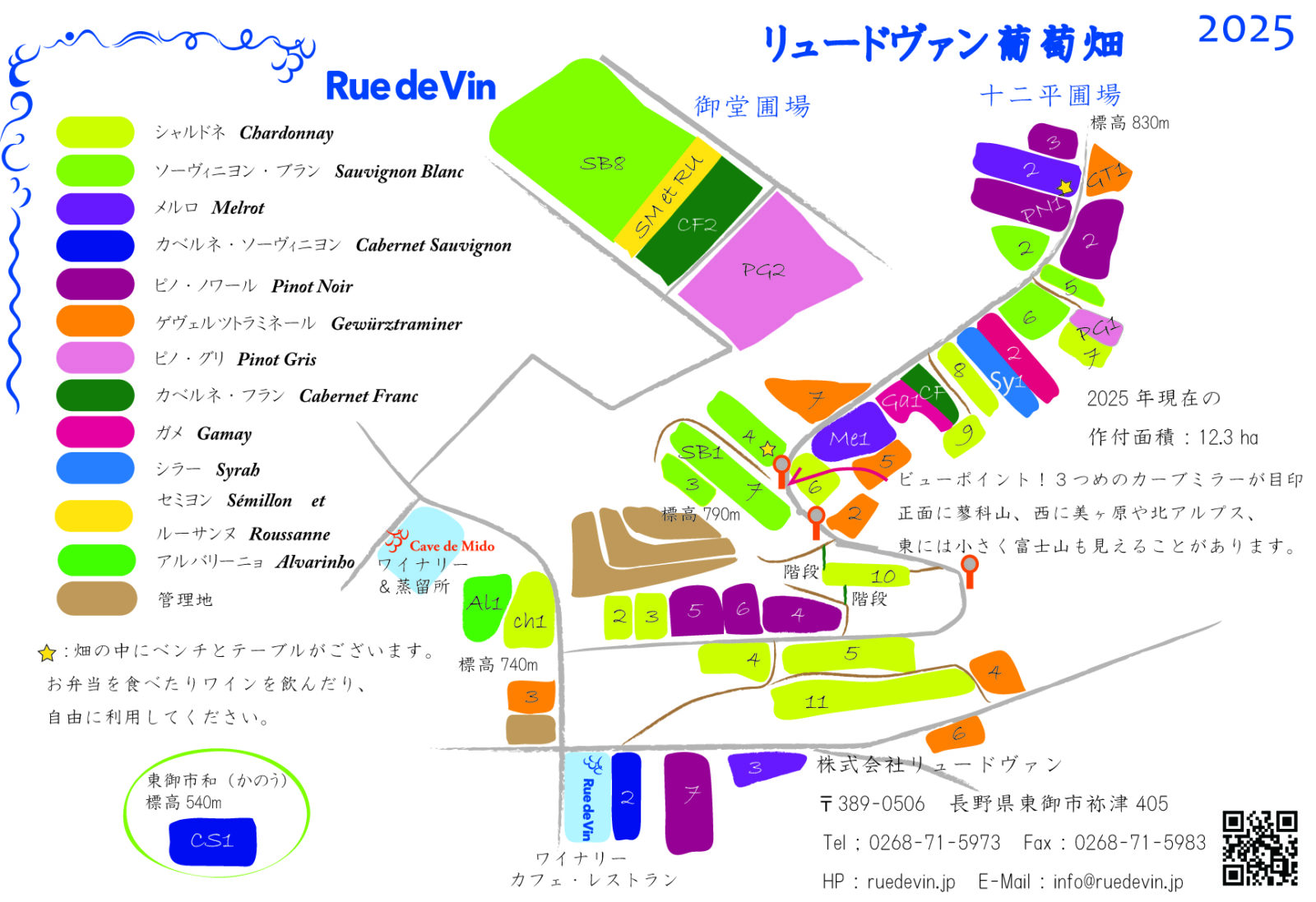 リュードヴァンのブドウ畑は、十二平圃場(じゅうにだいらほじょう)と御堂(みどう)圃場という2つのエリアがある。