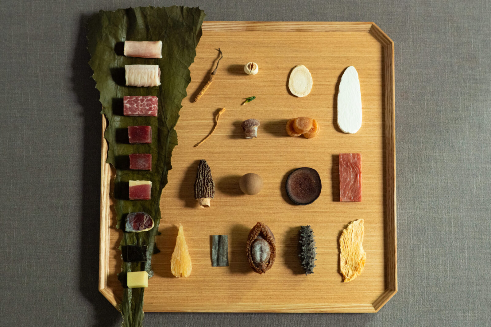 干し鮑と昆布茶のペアリングは、中国料理の伝統的な干し鮑と日本料理で使われる昆布を口の中でマリアージュさせることで、海のもの同士が相乗効果をもたらし、“一番出汁”が感じられる組み合わせ。