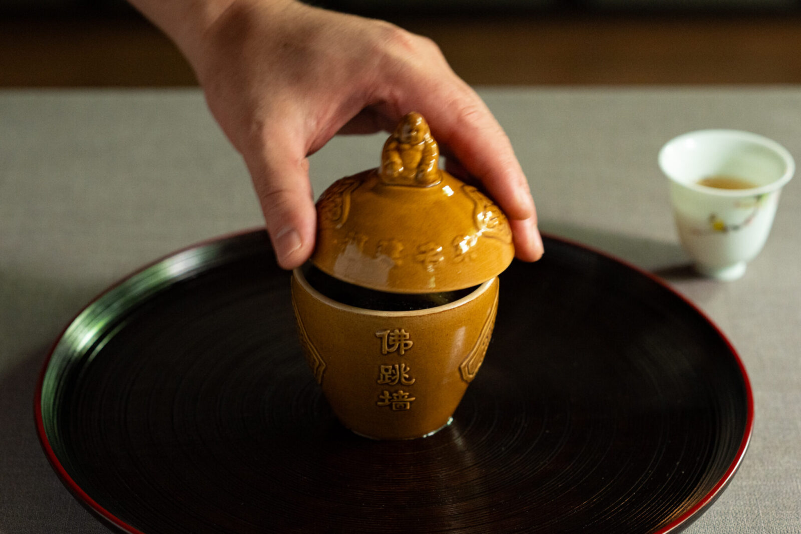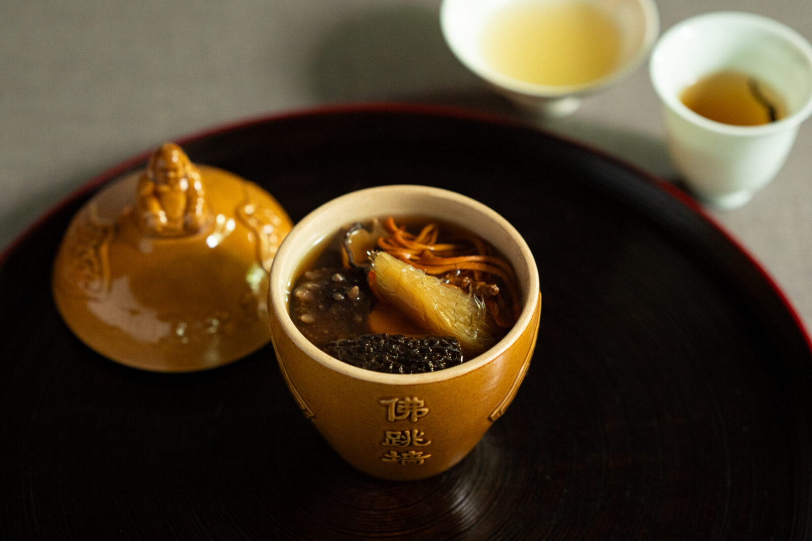 「佛跳牆(フォーティャオチャン)」は、中国の伝統的な「上湯(シャンタン)スープ」をベースに、一つ一つの食材に対して炊く・蒸す・焼くなどそれぞれ合ったアプローチを施す日本料理の技法「炊き合わせ」を取り入れている。