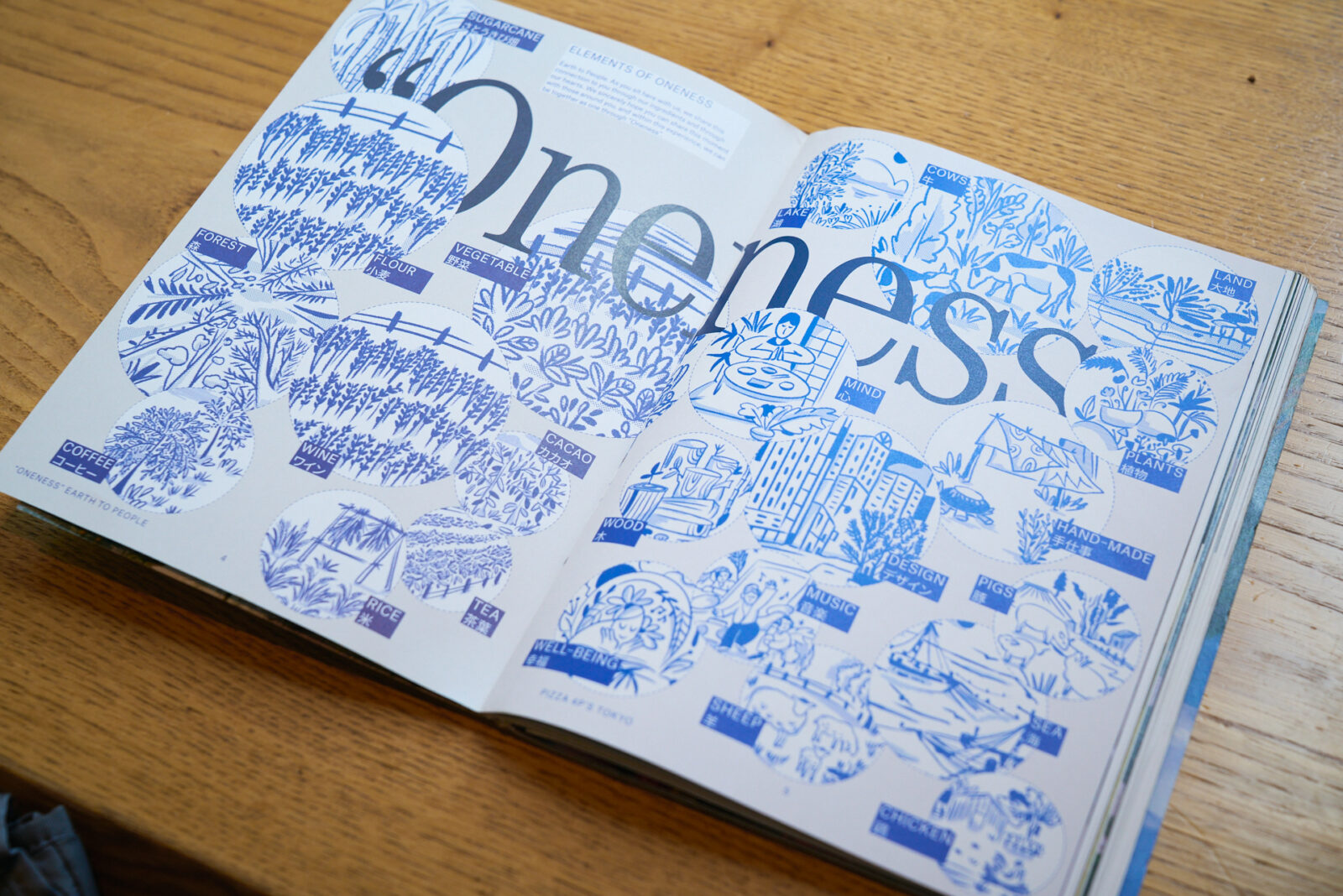 久保田さんの想像を超える形で広まるメニューブックの最初の見開きには、「Oneness」と記されている。メニューブックも、店舗づくりも、店舗で提供されるフードやドリンクの構成も、すべてはこの言葉から始まった。