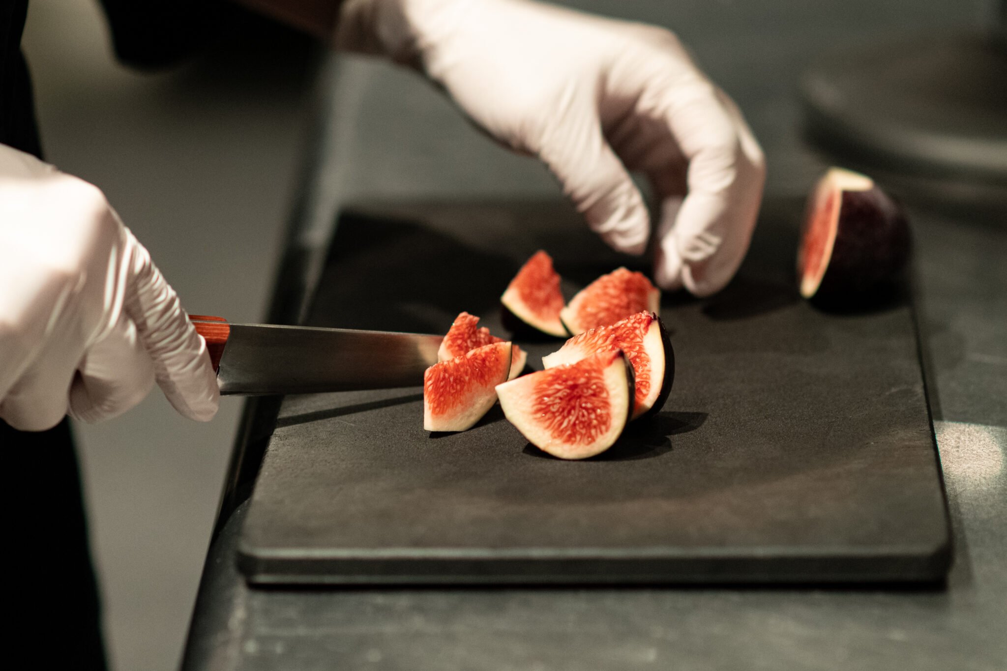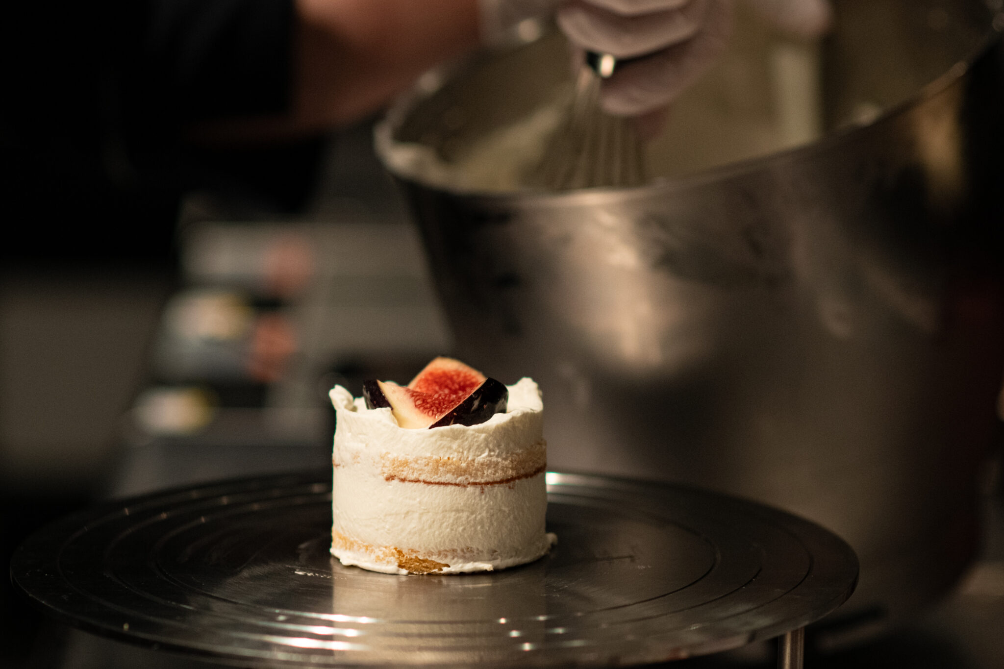 2018年の立ち上げから参加したイノベーティブレストラン「長谷川 稔」(現「薫 HIROO」)では、カウンターテーブルで、パティシエだけでなくサービスも兼任した。