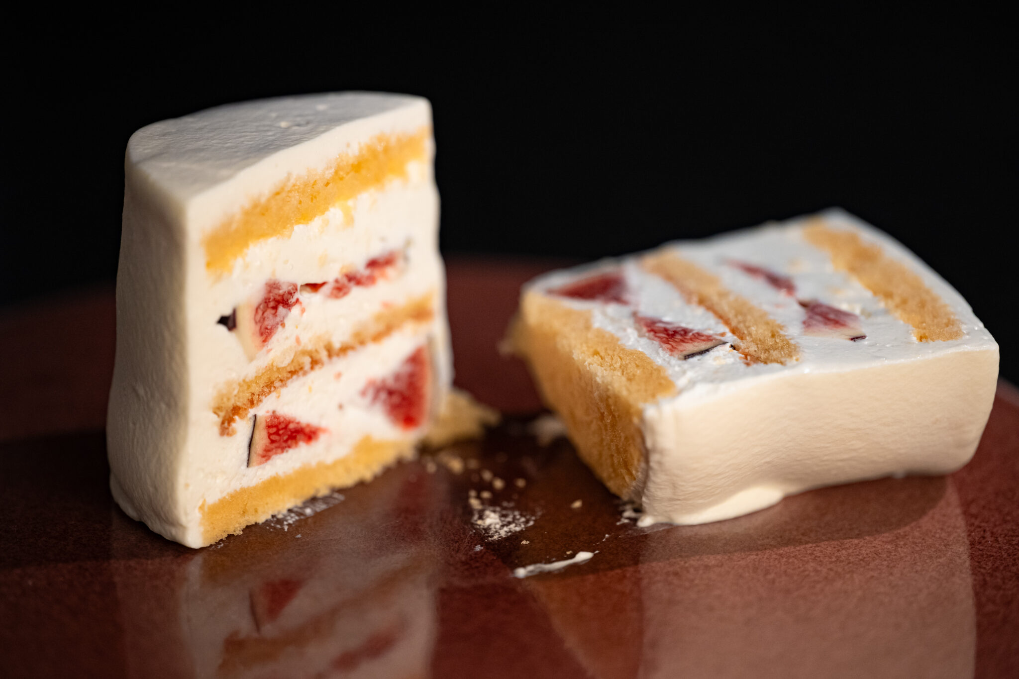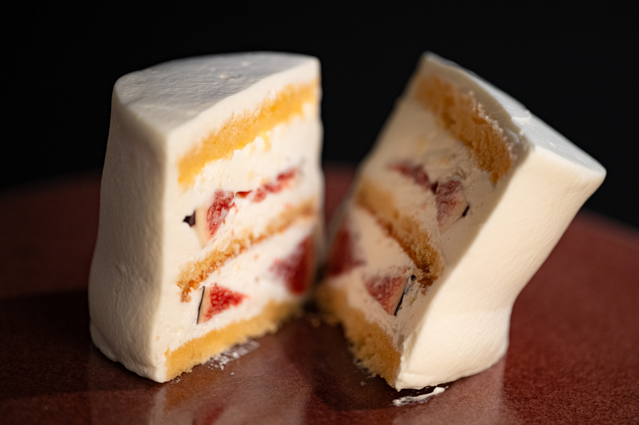 季節によってマンゴーやイチゴ、イチジクなど旬のフルーツをサンドする。柔らかさや甘さ、酸味のバランスが少しでもショートケーキに合わないと感じたら、その日はメニューには載せないこだわりようだ。