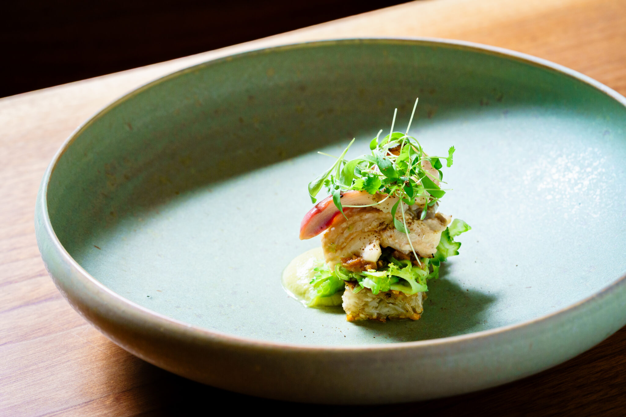 コース料理は全8品。個性豊かで多様な食材の組み合わせは、どれも意外ながら日本古来の発酵調味料を生かしたオリジナルなソースが調和を醸す。煉瓦造りの温かみのある光を放つ空間、手触りのいいカトラリー。そして行き交うスタッフたちは、的確にテーブルの上を把握して、その食材の魅力を伝えてくれる。
