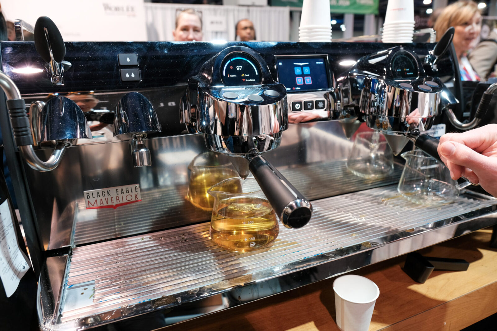 Payton Mittenzwei, account manager at Simonelli USA, told me it is a semi-automatic machine that can extract both coffee and tea. Simonelli is an Italian company that makes espresso machines under the brands Nuova Simonelli and Victoria Arduino.